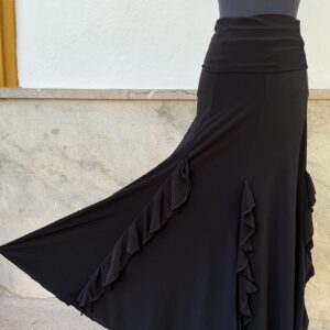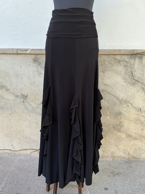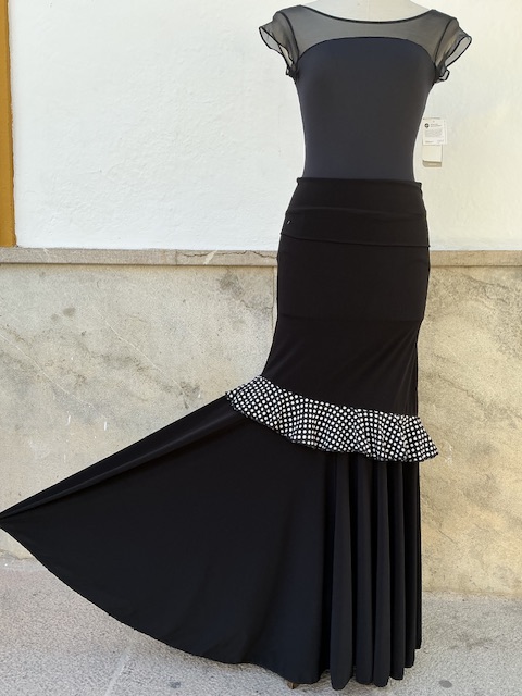 Faldas de Flamencas con cintura alta, son ideales para cualquier tipo de baile, en especial para el flamenco . La mejor característica de esta falda es su vuelo,es una capa asimétrica con un original  volantito de lunares ,que le da un toque muy original.