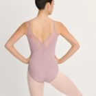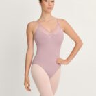 Maillot de tirantes finos con blonda a tono en los detalles en pico del escote y la espalda.