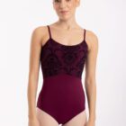 Maillot Manila tirantes con red flocada de Intermezzo Ballet Danza. Body de ballet sin mangas con detalle de tul flocado en delantero y espalda. Para danza, ballet y todo tipo de artes escénicas. Maillot de Meryl® con forro delantero. Disponible en negro, granate o verde alga. Body de danza elástico, de tejido suave, cómodo y ajustable al cuerpo.